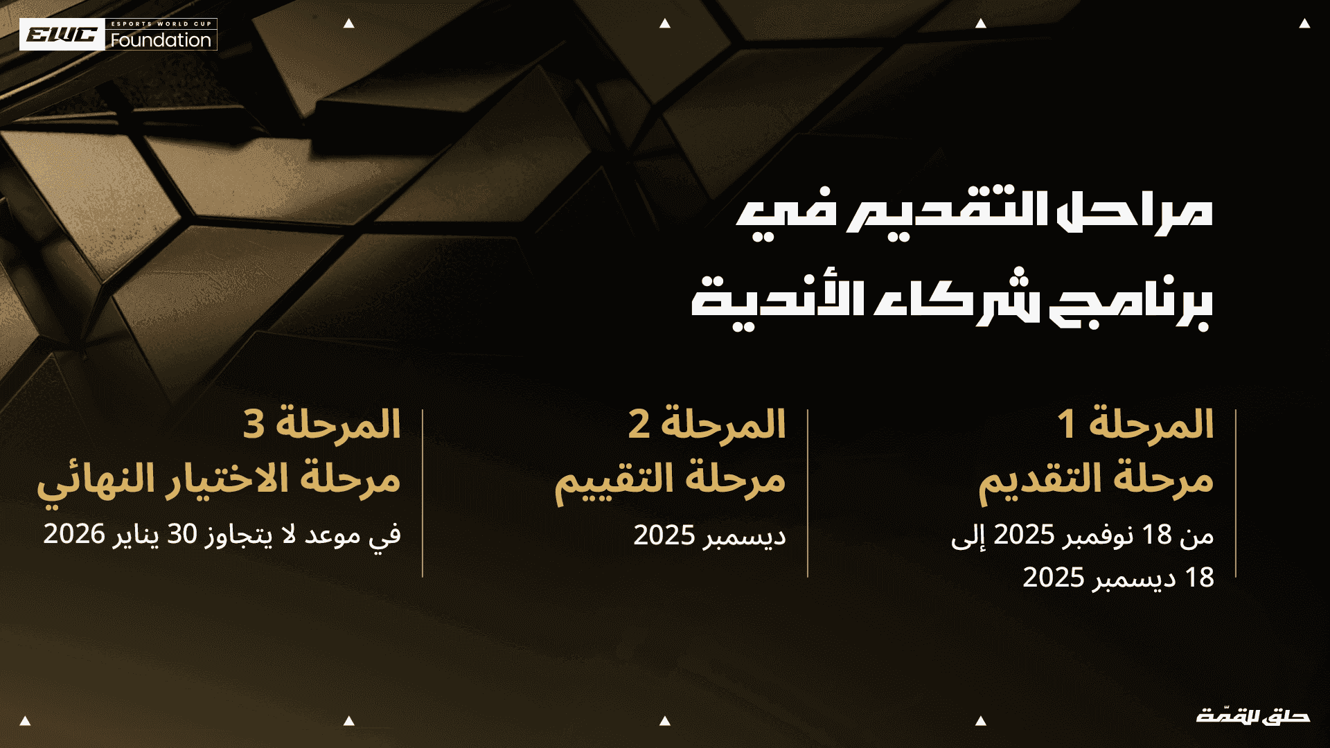 ندعو جميع الأندية حول العالم إلى التقديم والمشاركة، فهدفنا هو توسيع نطاق الرياضات الإلكترونية عالمياً، مع التركيز على المناطق الواعدة مثل الهند، الصين، جنوب شرق آسيا، وأمريكا اللاتينية وغيرها من المناطق التي تشهد نمواً متسارعاً في هذا المجال.