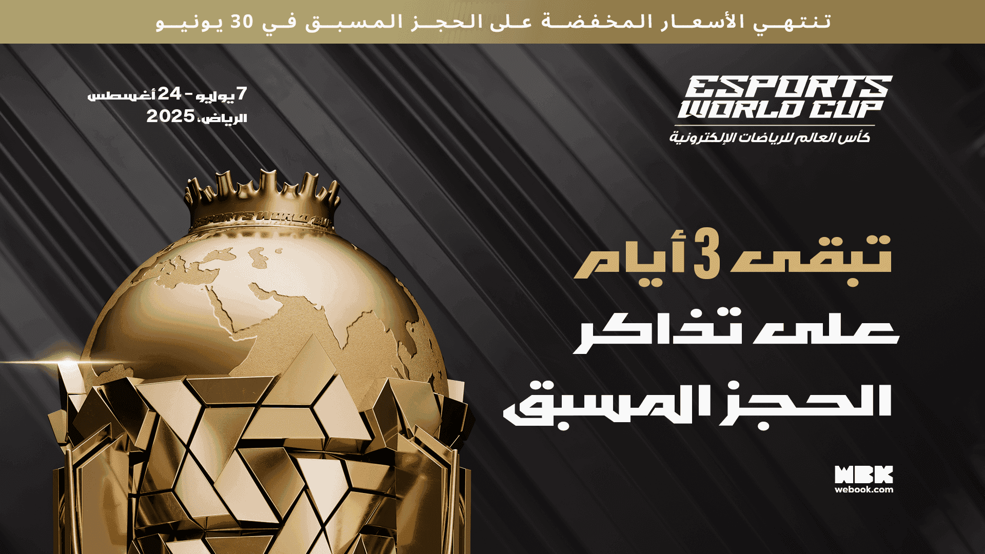 باقي 3 أيام للحصول على تذاكر الحجز المبكر لحضور كأس العالم للرياضات الإلكترونية.