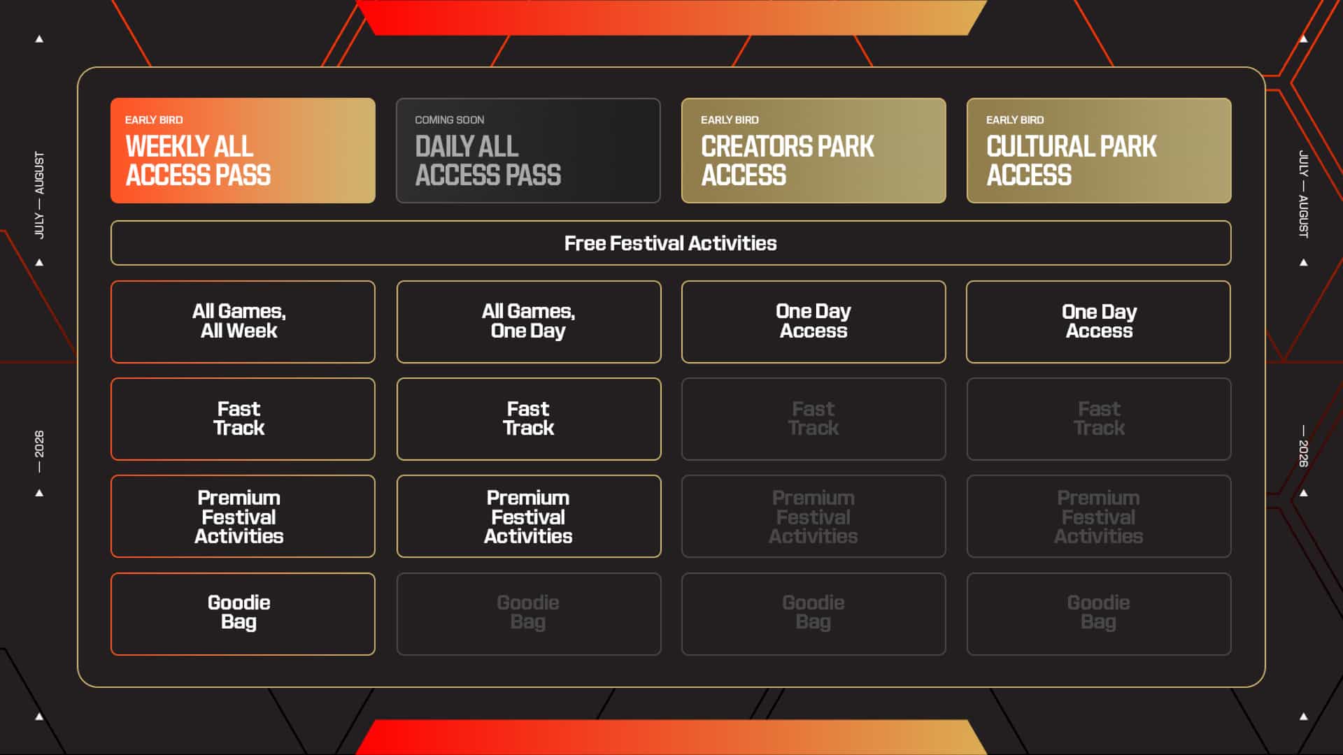 Activities range from spectating world-class esports, celebrity meet-and-greets, live music, fireworks, and a full-scale premier gaming festival. See you this summer for more unforgettable moments!