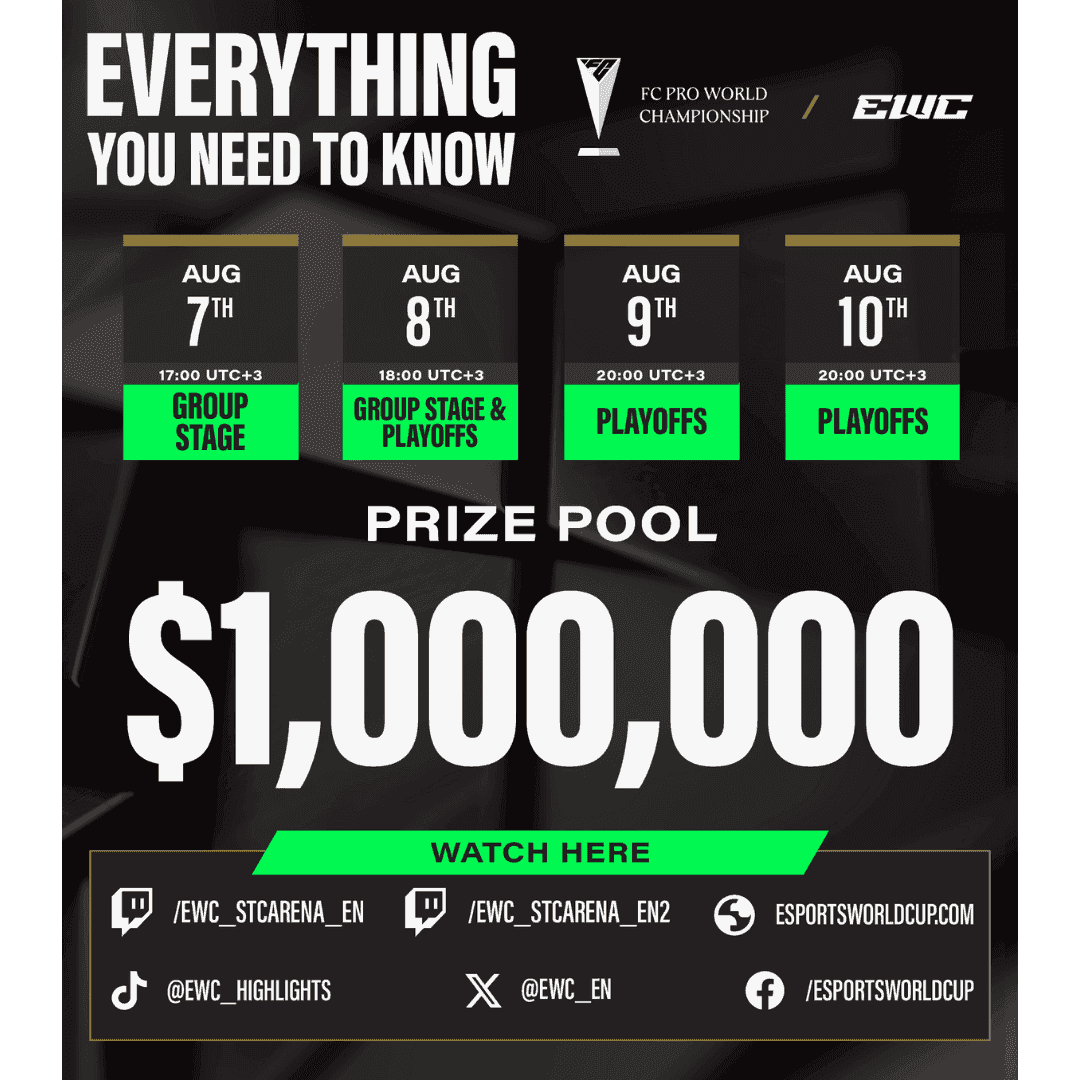 This year, the EA SPORTS FC tournament at the 2025 Esports World Cup levels up, officially becoming the FC Pro World Championship at the 2025 Esports World Cup. With this change, it becomes part of the EA FC Pro Circuit, after running last year as a standalone event tied to DreamHack.