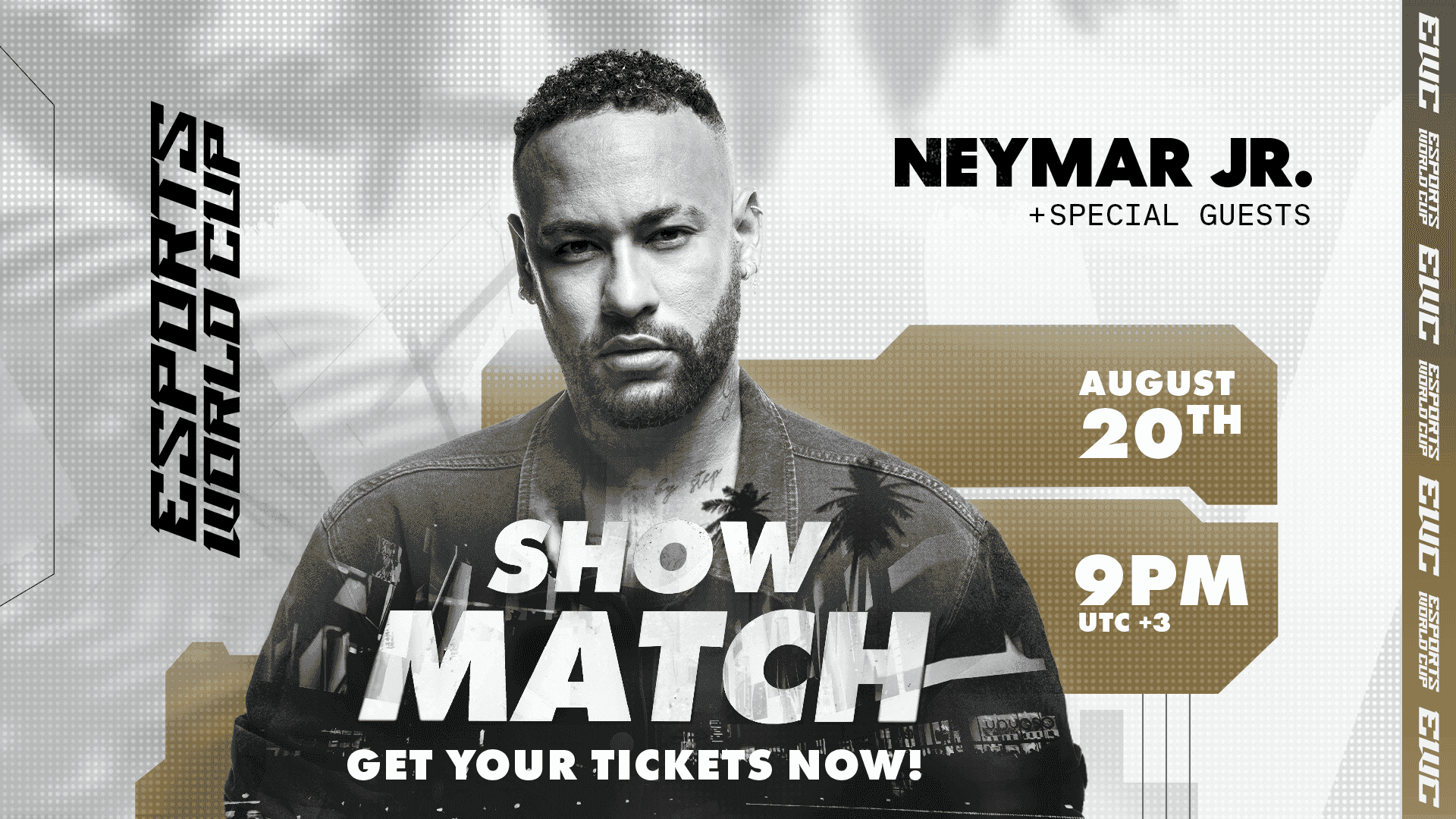 More information can be found here on the Esports World Cup website and Esports World Cup account on X. To buy tickets, please see EWC Celebrity Show Match featuring Neymar Jr | webook.com.
